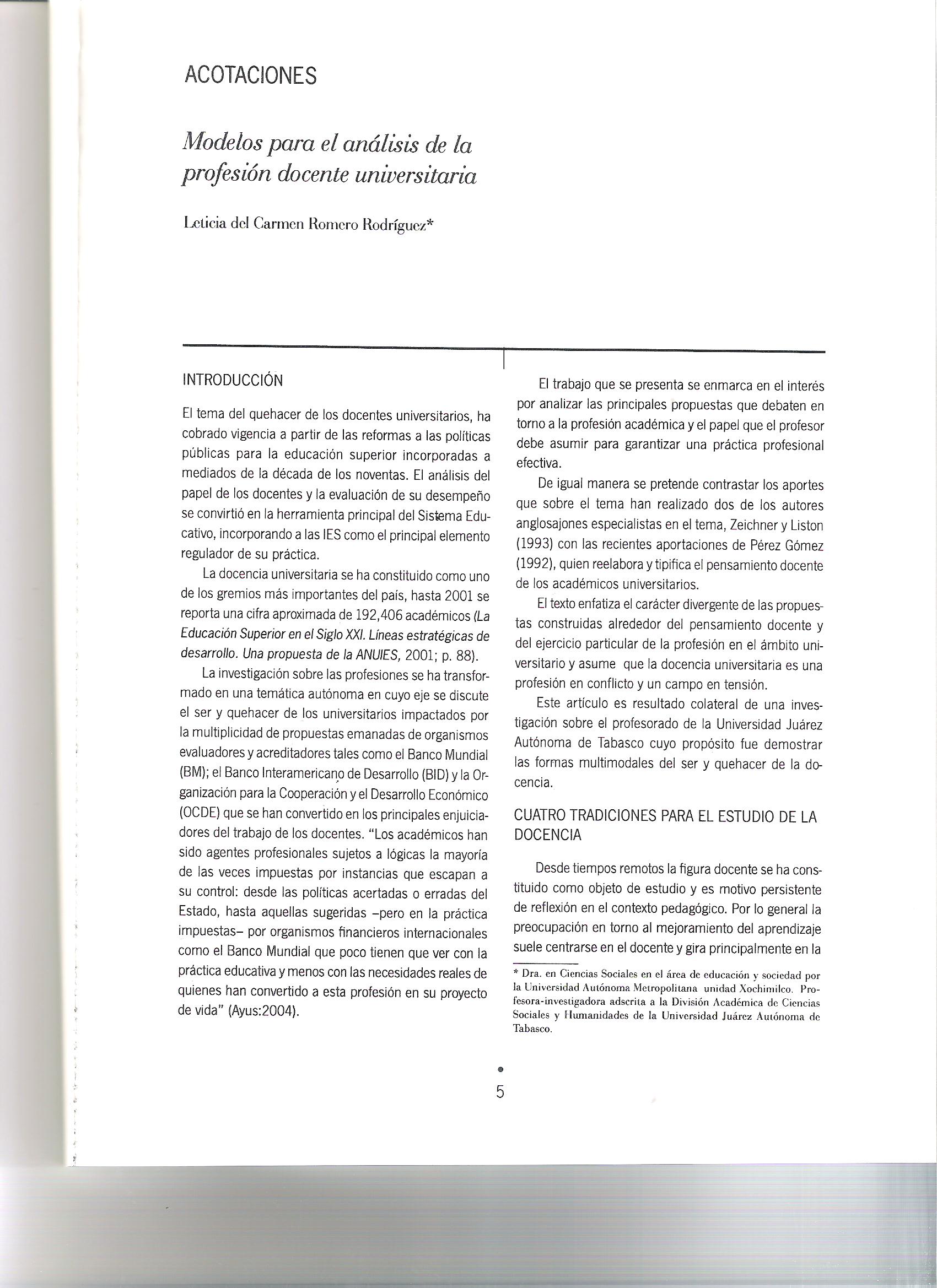 El tema del quehacer de los docentes universitarios, ha cobrado vigencia a partir de las reformas a las políticas públicas para la educación superior incorporadas a mediados de la décadas de los noventas.