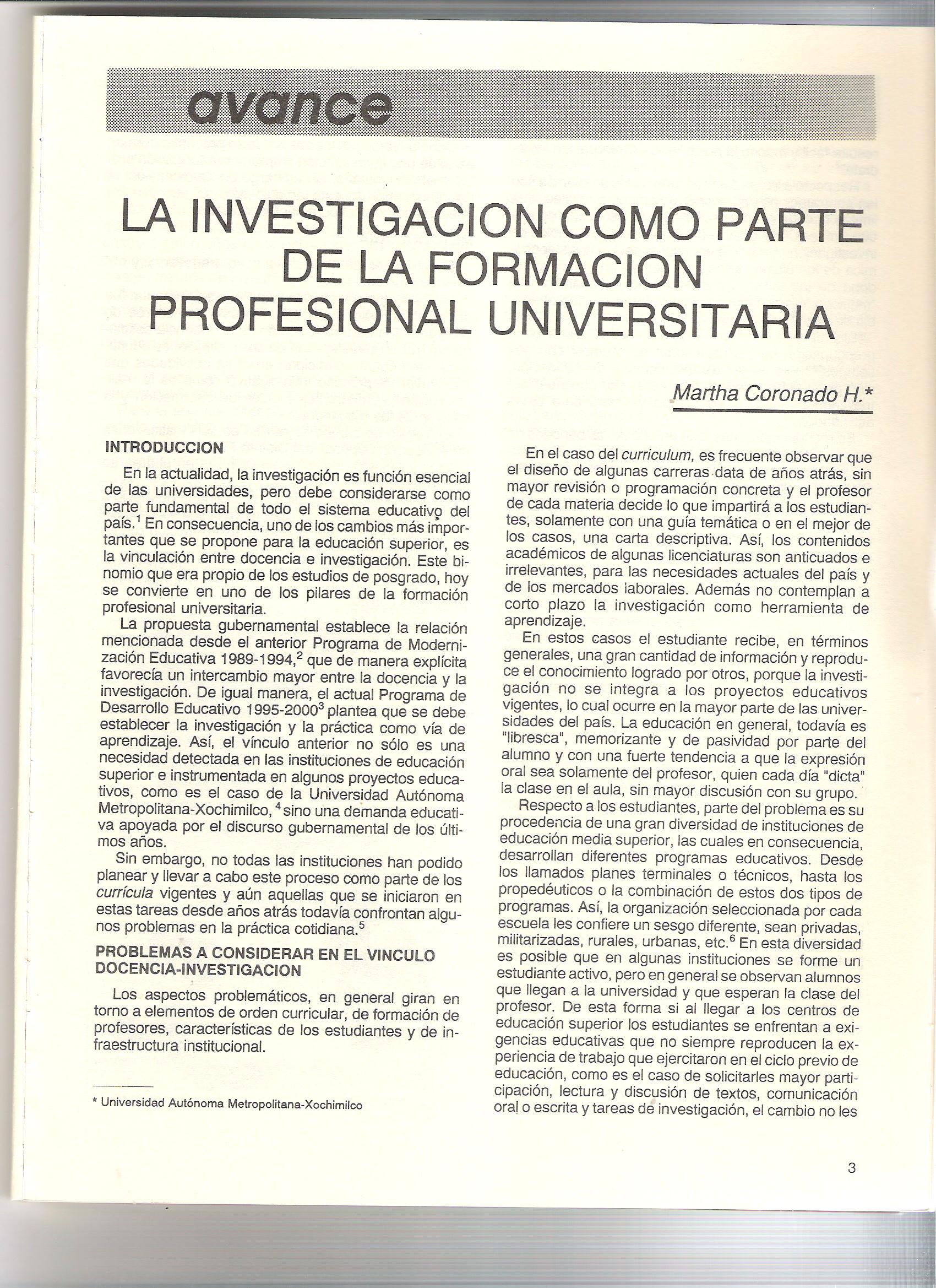 La investigación como parte de la formación profesional universitaria