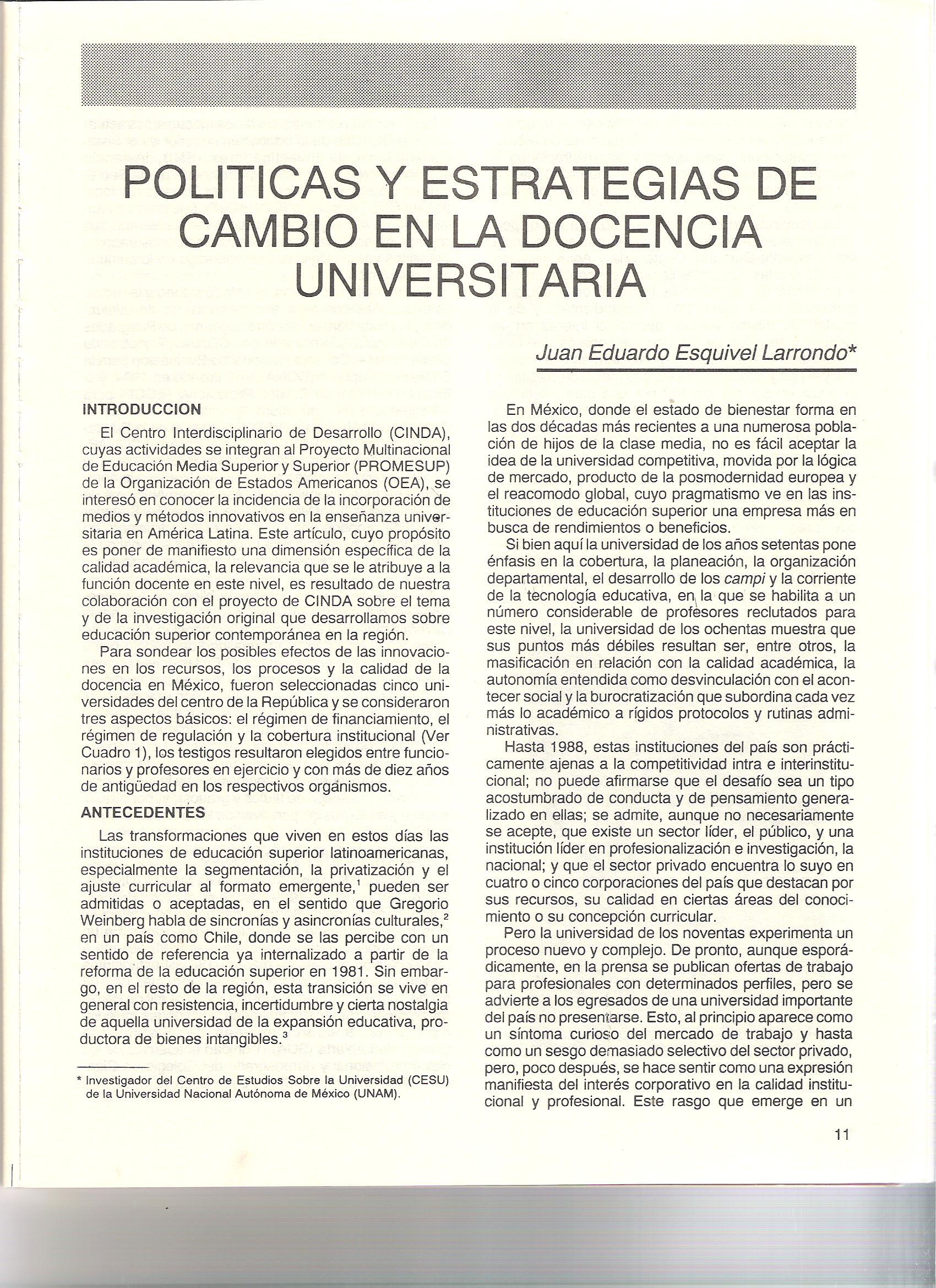 Politicas y est5rategias de cambio en la docencia universitaria