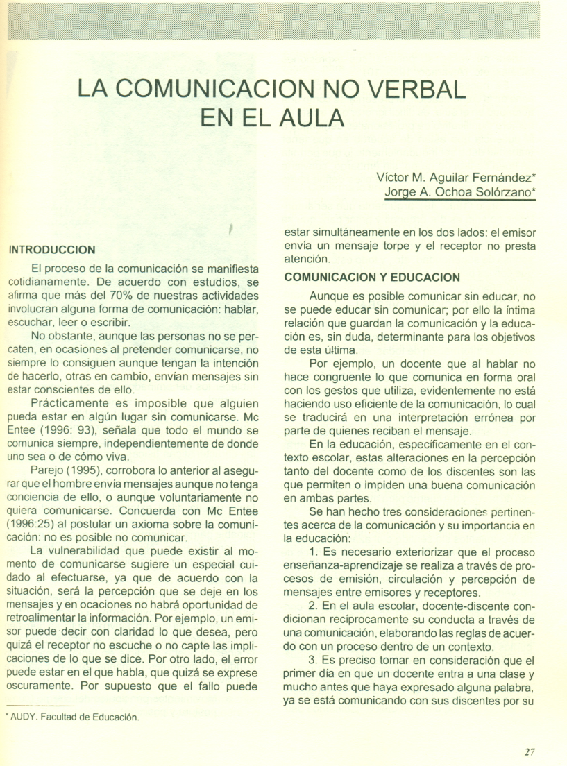 La comunicación no verbal en el aula
