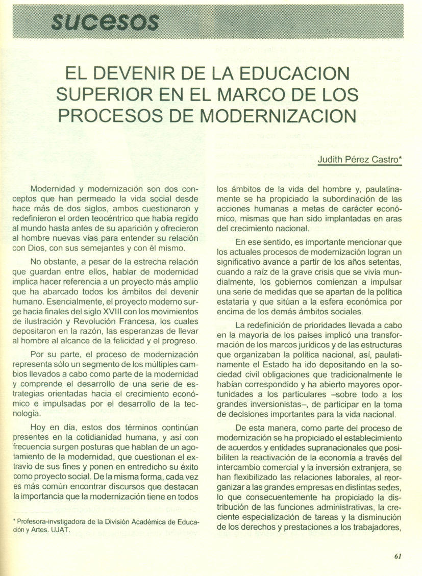 El devenir de la educación superior en el marco de los procesos de modernización