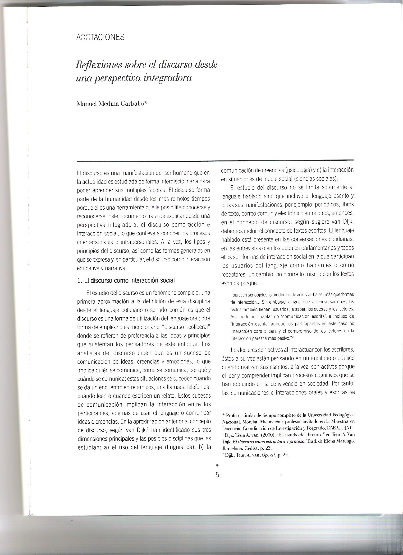 Reflexiones sobre el discurso desde una perspectiva integradora