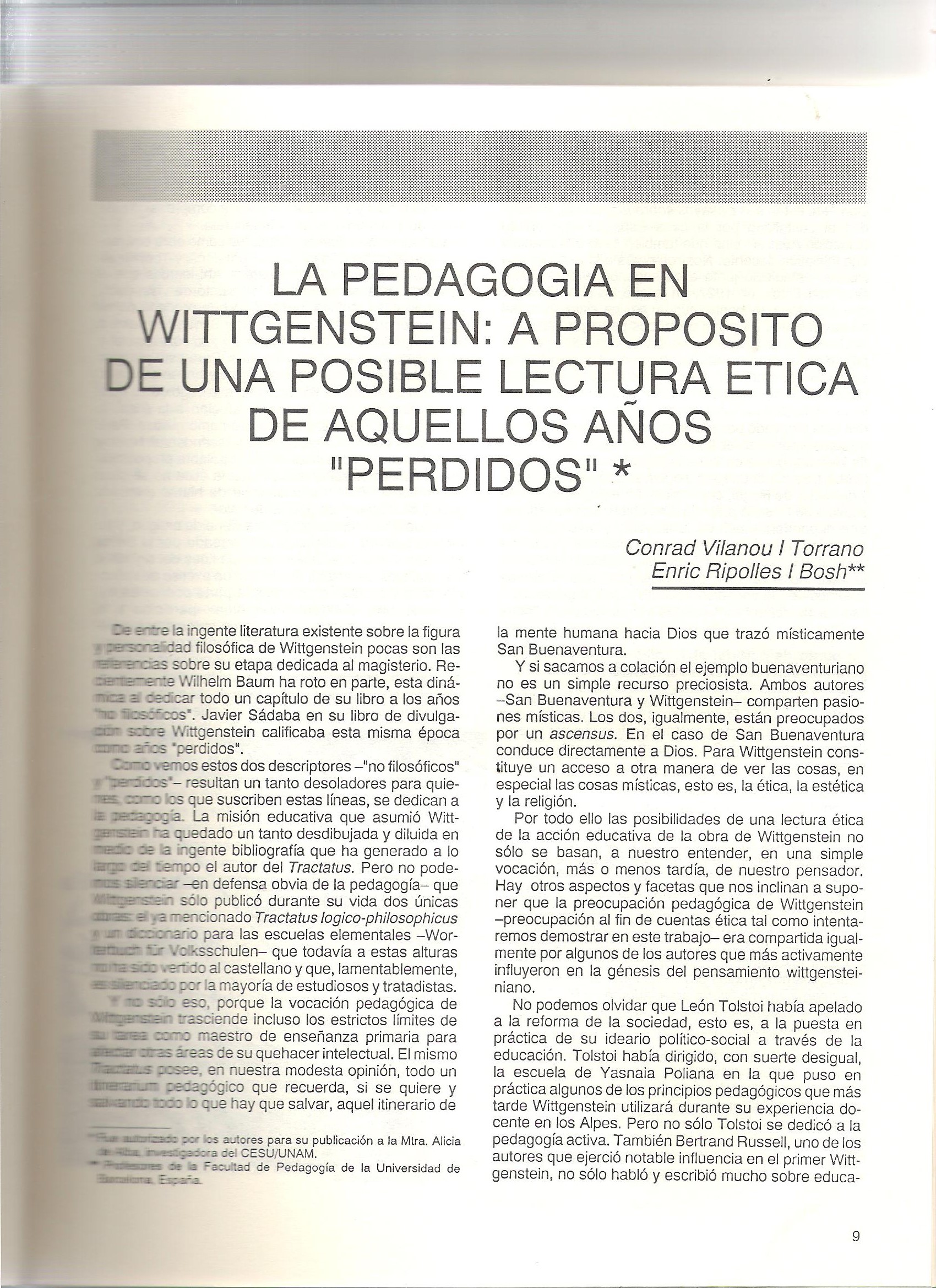 La pedagogía en Wittgenstein: A propósito de una posible lectura ética de aquellos años "perdidos"