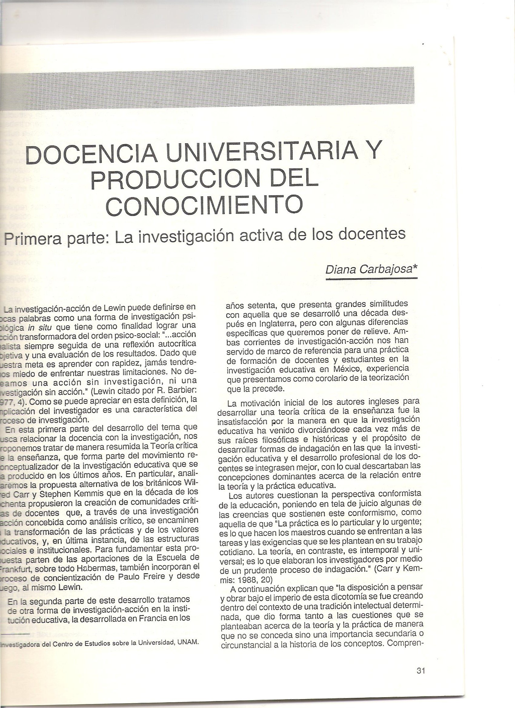 Docencia universitaria y producción del conocimiento. Primera parte: La investigación activa de los docentes