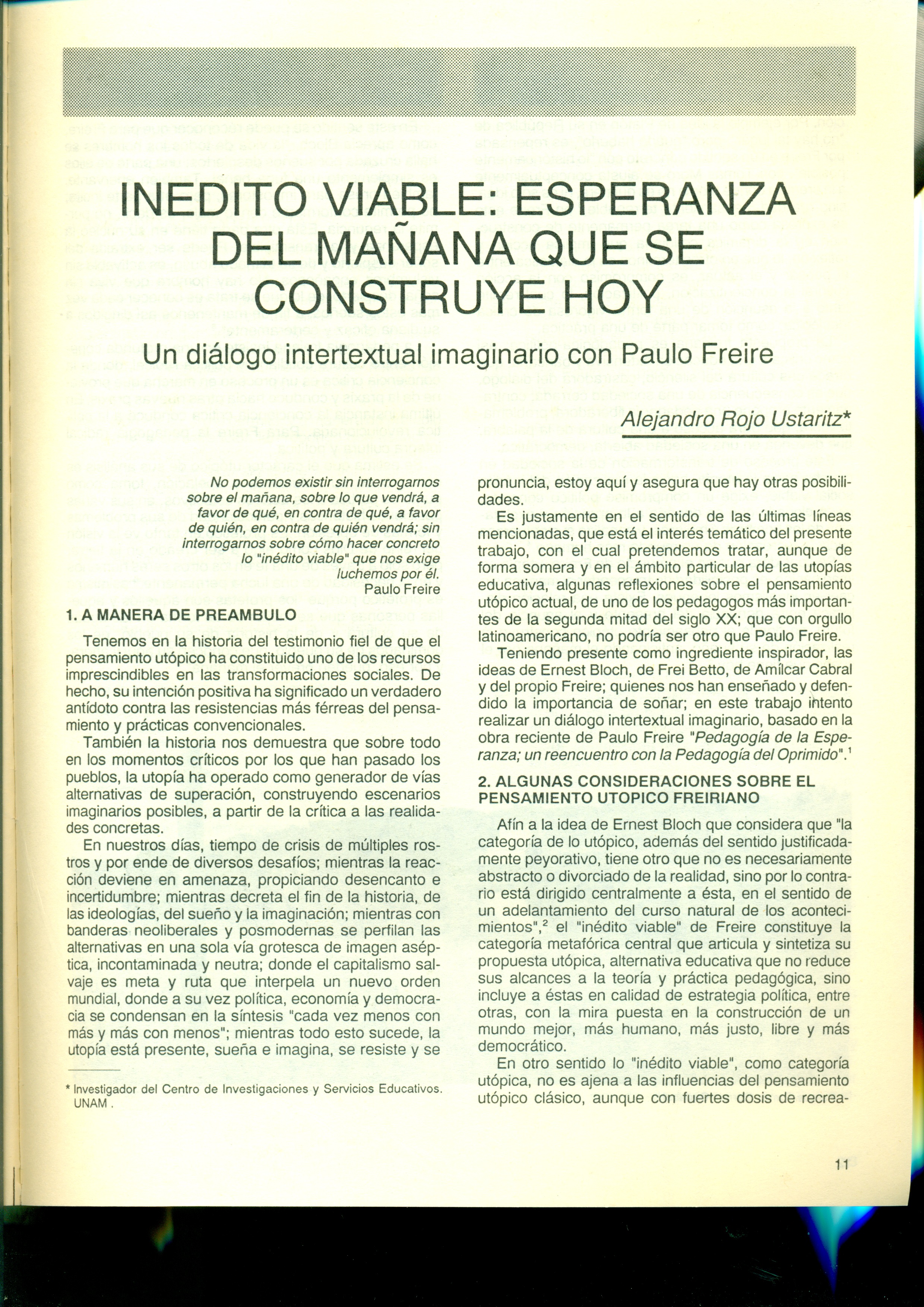Inedito viable: Esperanza del mañana que se construye hoy