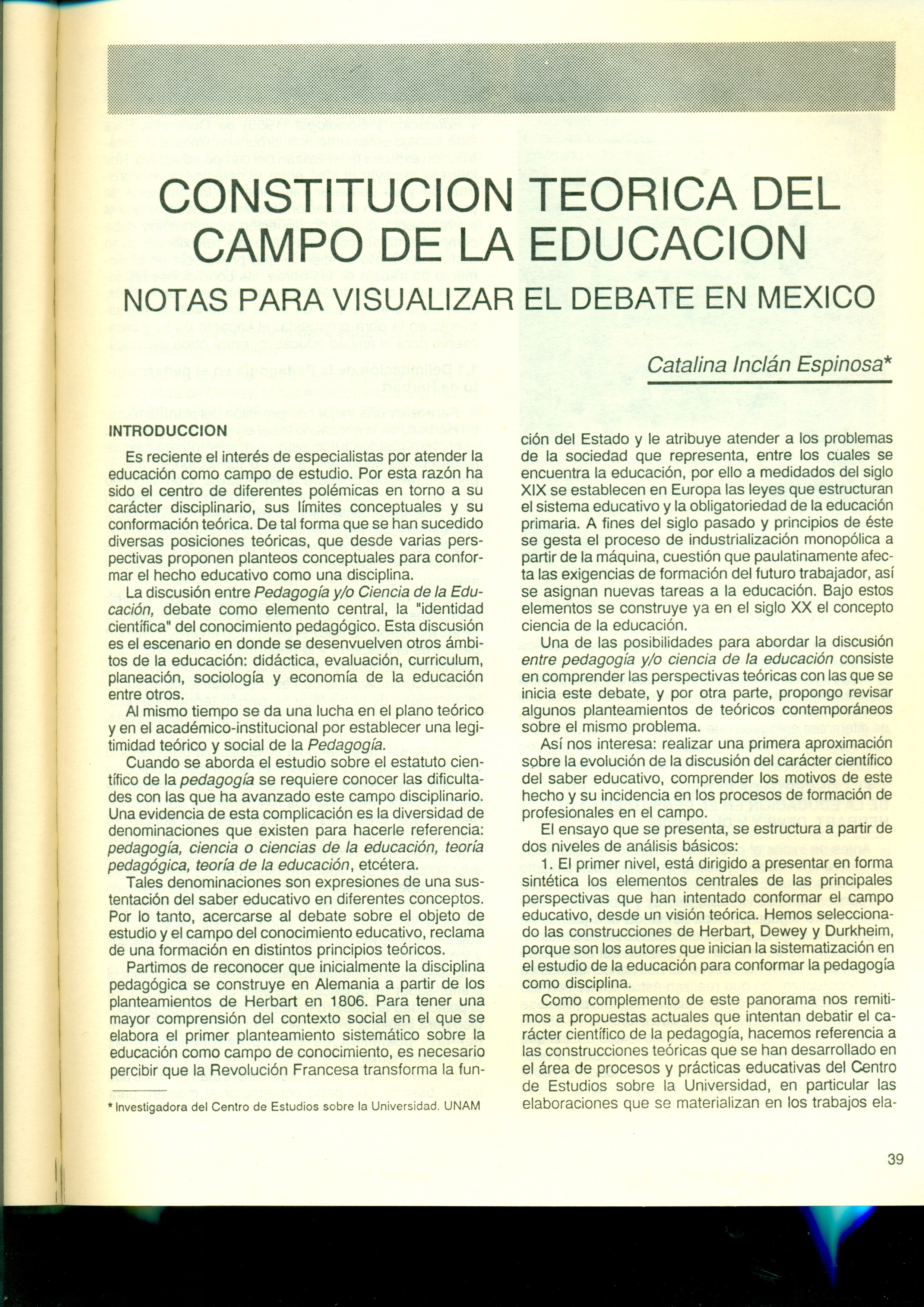 Constitución teórica del campo de la educación