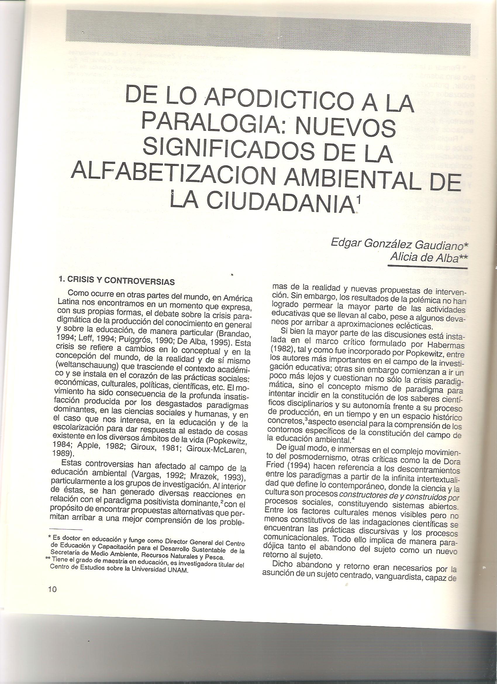 González Gaudiano, E., & del Alba, A. (2015). De lo apodíctico a la paralogía: Nuevos significados de la alfabetización ambiental de la ciudadanía. Perspectivas Docentes, 18. https://doi.org/10.19136/pd.a0n18.684