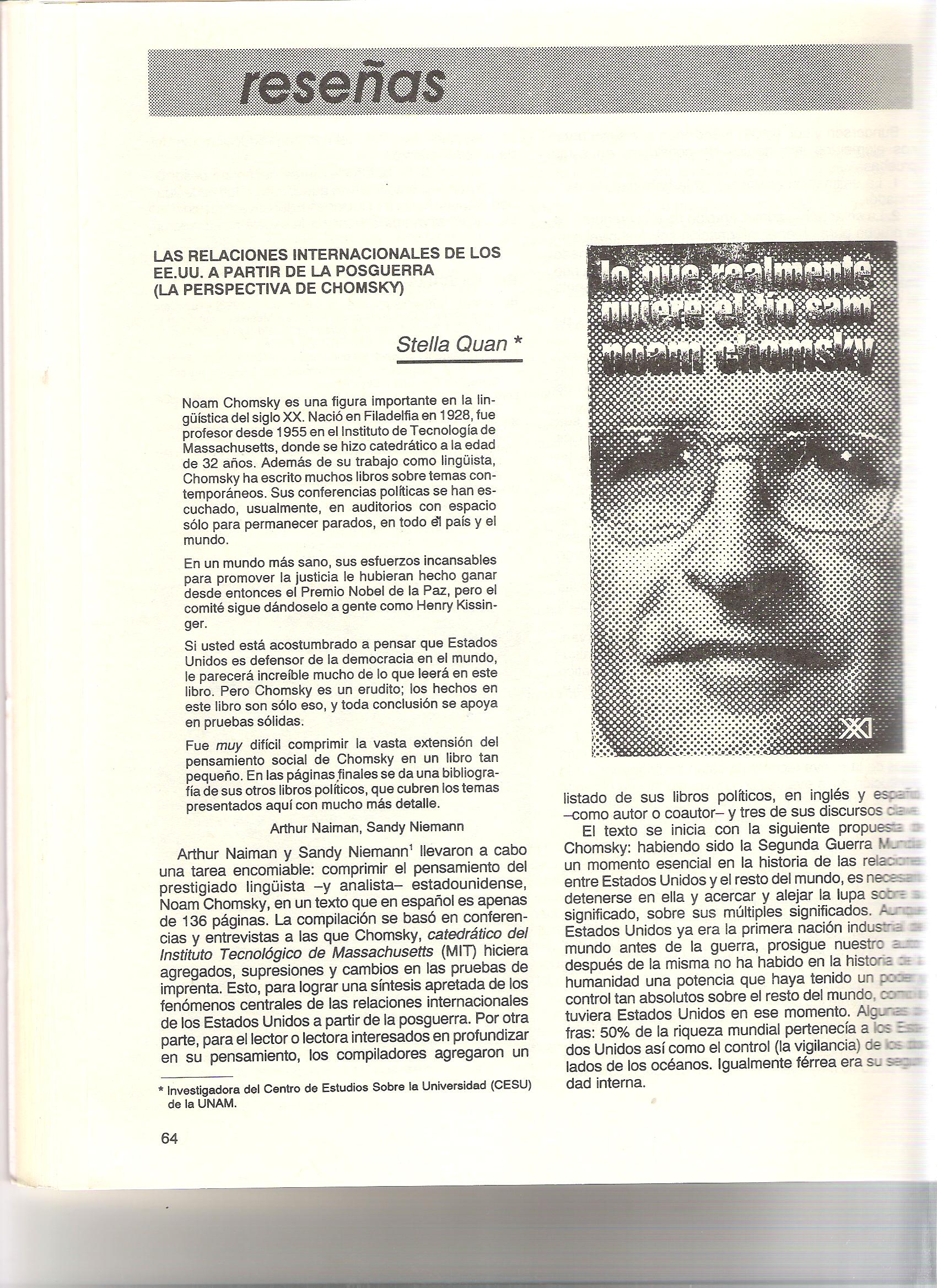 Las relaciones internacionales de los EE. UU. a partir de la posguerra (La perspectiva de Chomsky)