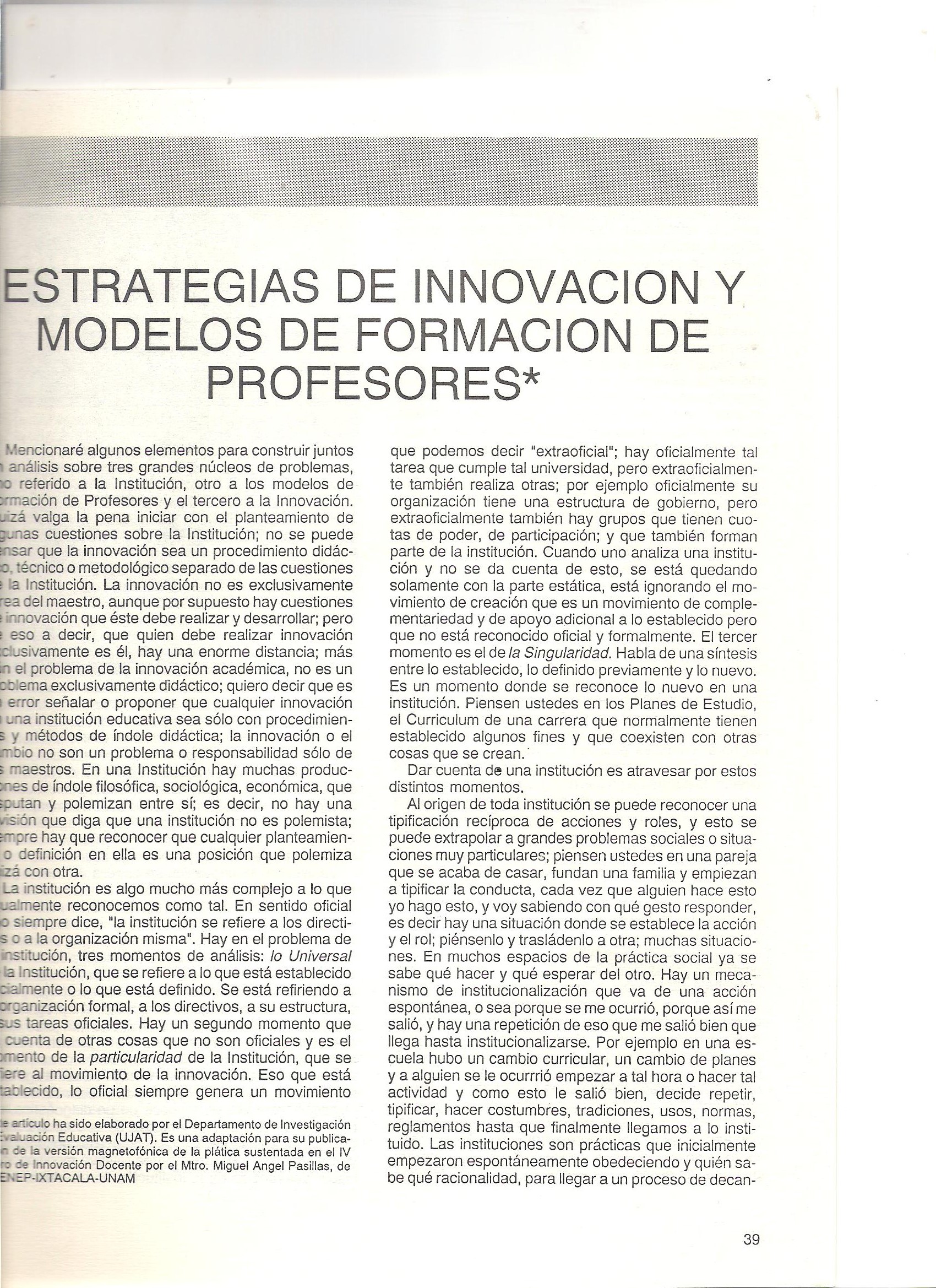 Estrategias de innovación y modelos de formación de profesores
