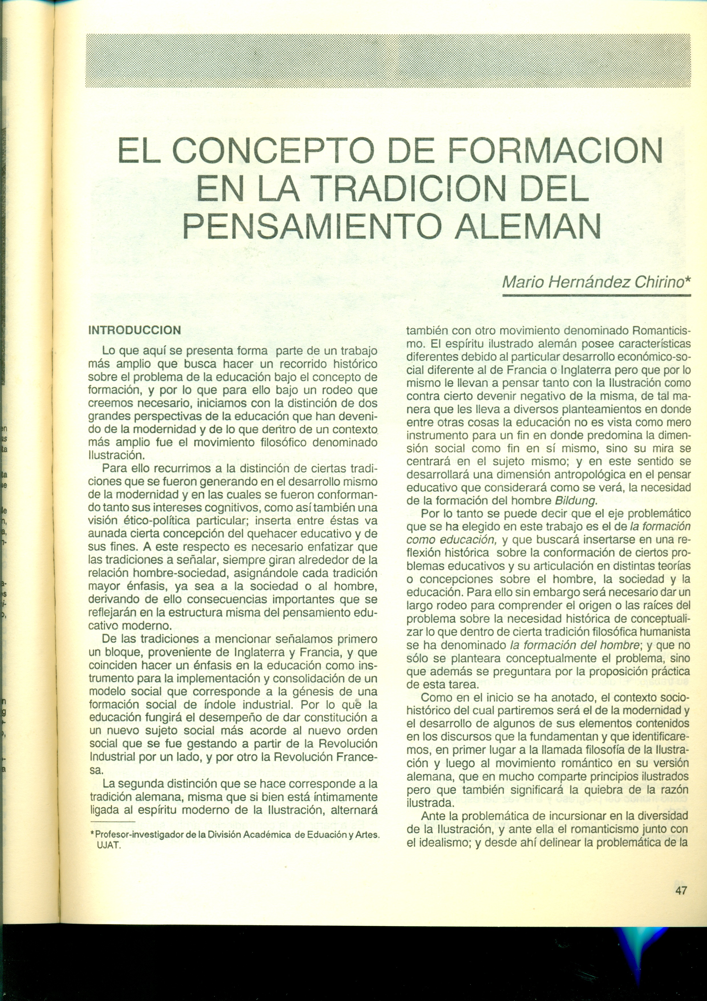 El concepto de formación en la tradición del pensamiento aleman